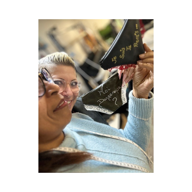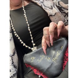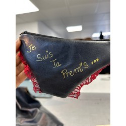 Créée et confectionnée par mes soins, cette pochette SandyX peut accueillir un gloss, une carte bancaire, un petit mot intime ou tout ce que vous souhaitez garder près de vous. Elle allie praticité et sensualité dans un style affirmé, fidèle à l’univers SandyX.