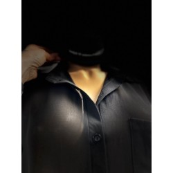 Ombra - Chemise Oversize noir avec string bijou ajustable - Du 36 au 54